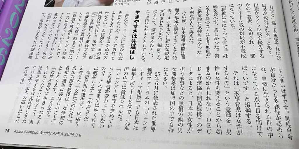 3月8日は、国際女性デー。AERAから取材を受け、コメントがAERA(3/9号)本誌、AERAデジタルに掲載されました。